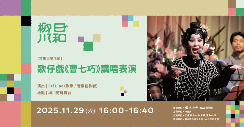 由市集主視覺延伸策畫的走讀工作坊,我們從林之助的《屋譜》出發,以膠彩的質地重構城中區的光之譜;歌仔戲遇上爵士樂,在《曹七巧》的吟唱中聽見命運的裂痕與女性的堅韌。