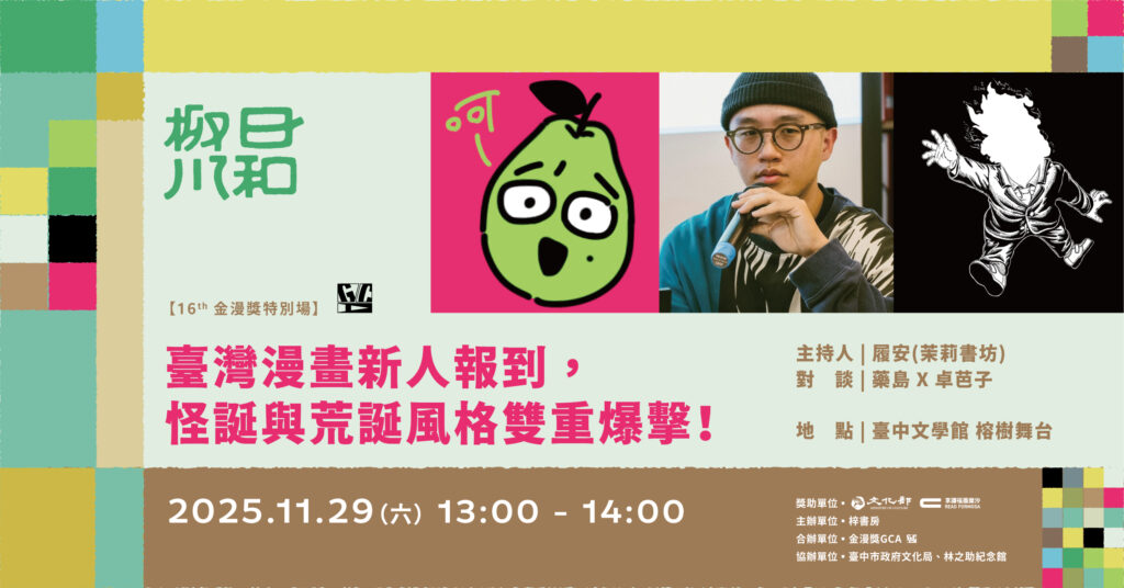 這次講座邀請茉莉書坊 Podcast 主持人-履安,與兩位大物新人漫畫家藥島&卓芭子一同對談,聊聊兩位的創作脈絡、漫畫啟蒙,以及他們如何以完全不同光譜的創作風格,給予臺灣漫畫市場「雙重爆擊」!