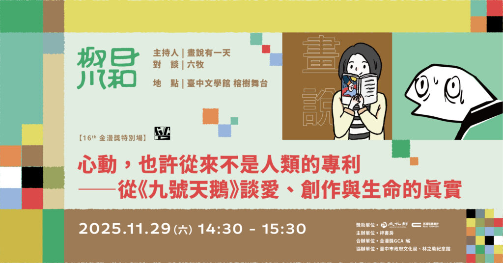 本次活動將由 IG 說書人畫說有一天與作者六牧對談。我喜歡的東西,真的是發自自己內心喜愛的嗎?難道不是被「演算」好的?除了探討創作核心與作品哲思,我們也要大聊金漫獎、台灣漫畫的特色,以及彼此對台漫未來的想像!