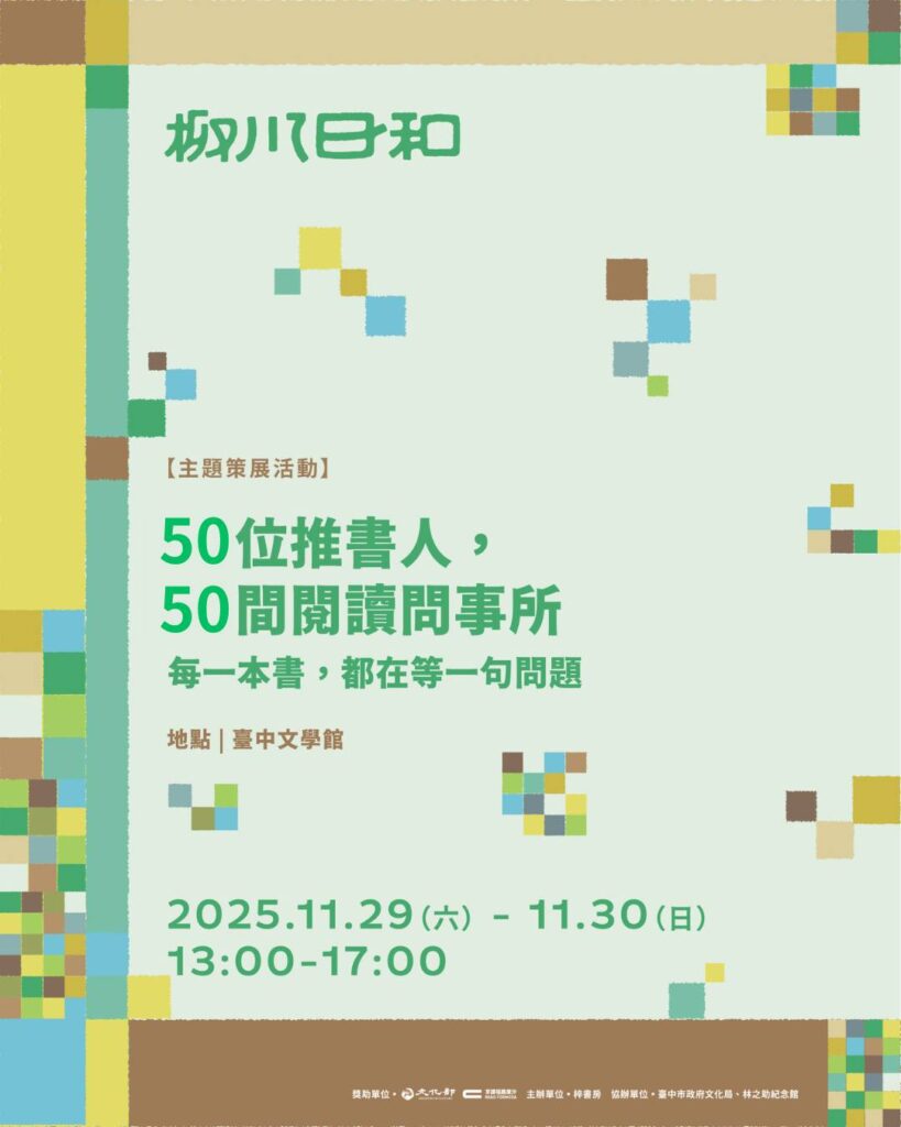 ➥兩天四個時段,50 位推書人擺攤分享:他們的書單、閱讀方式、想法,以及你對閱讀的任何提問。