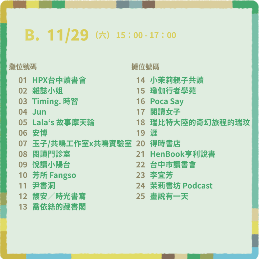 - B 時段|11/29(六)15:00–17:00