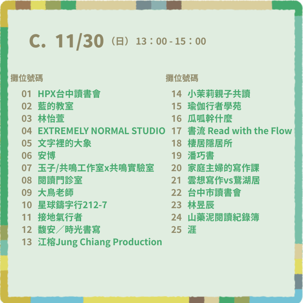 - C 時段|11/30(日)13:00–15:00