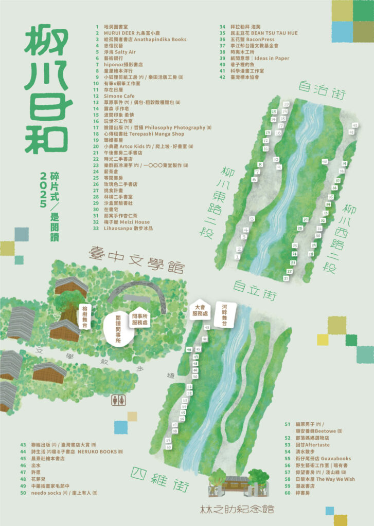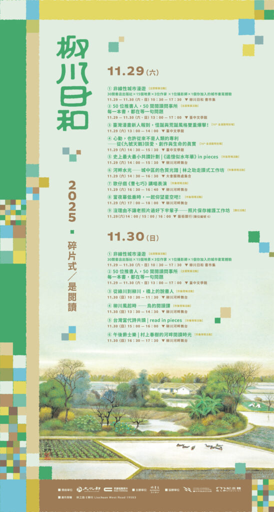 2025柳川日和主視覺,以出生於台中的膠彩畫之父林之助的作品《柳川》與《屋譜》為靈感,將城市之美、閱讀與記憶轉化為策畫語言。