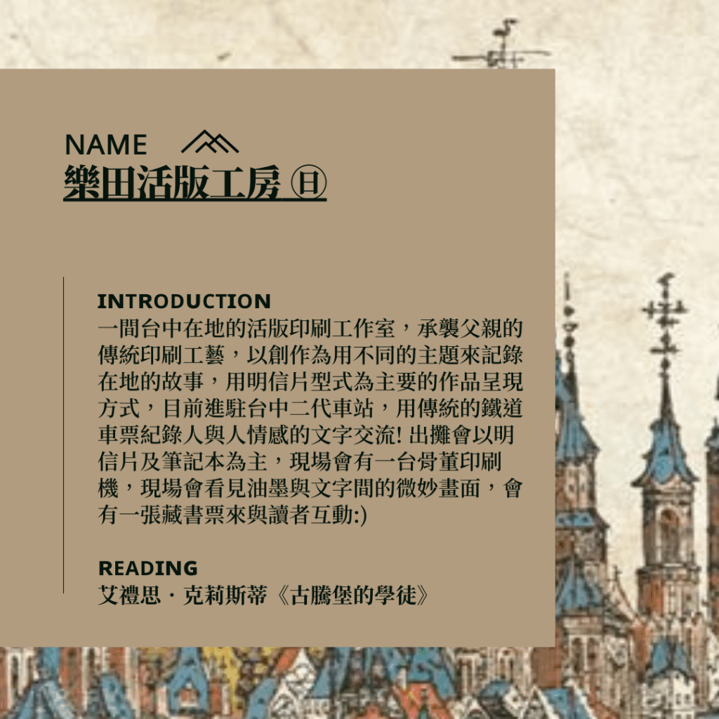 邀請攤主們介紹自己正在讀的書、聽的音樂,